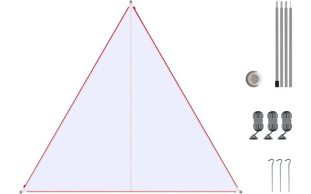 Lieferung inkl. 3 Heringen, 3 Abspannseilen inkl. Alu Stopper, 4-teilige Stahlaufstellstange 180 cm x 19 mm inkl. Kunststoff Teller.
