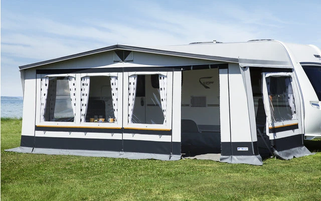 Ganzjahresvorzelt, 7-teilig. Zelttiefe: ca. 240 cm. Vordach: ca. 20 cm.