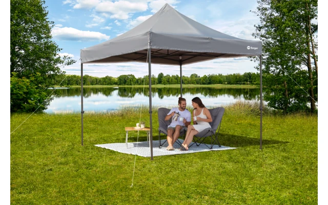 Durch das Faltgestänge sehr schnell auf- und abgebaut.