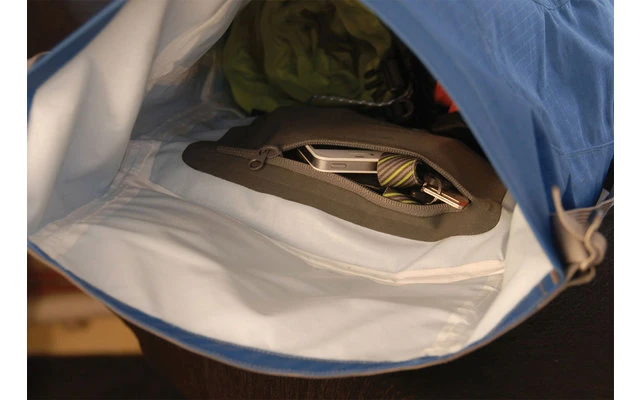 Eine Stretch-Innentasche mit Reißverschluss ist integriert, damit Gegenstände nicht im Boden des Rucksacks verschwinden. Außerdem verfügt er über eine äußere Befestigungsschlaufe, seitliche Netztaschen aus Stretchmaterial und eine große Reißverschlusstasche für eine leicht zugängliche Aufbewahrung.