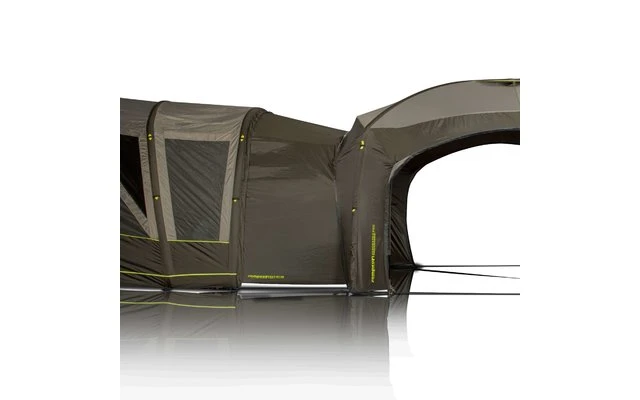 Ideal für Küchen, Lounges oder Essbereiche. Die wasserdichte Verbindung sorgt dafür, dass Sie bei jedem Wetter trocken bleiben. Es ist möglich, bis zu vier Zelte an einen einzigen Pavillon anzuschließen, um eine „Zeltstadt“ mit einem zentralen Treffpunkt für Freunde und Familie zu schaffen.
